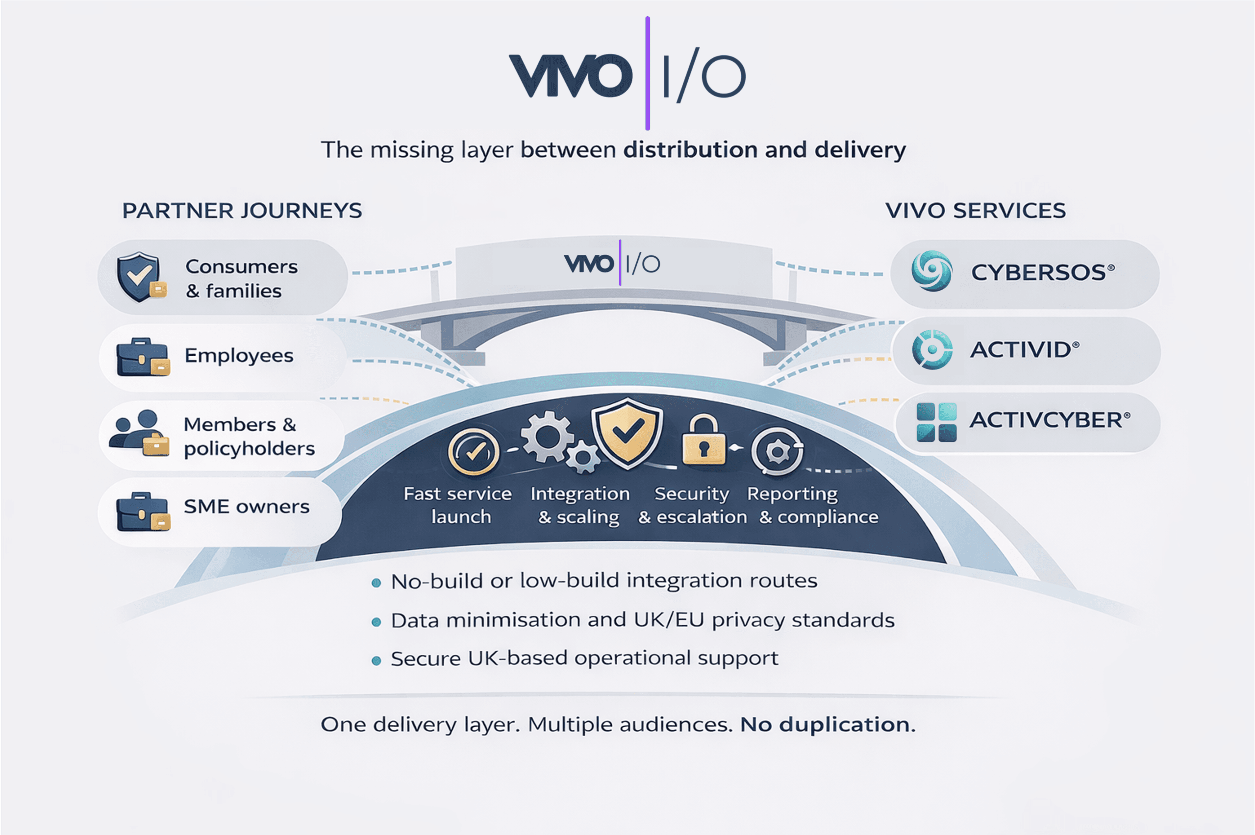Ready-made integration routes, tooling and delivery components that let partners embed VIVO services quickly, securely and compliantly – without development-heavy projects.